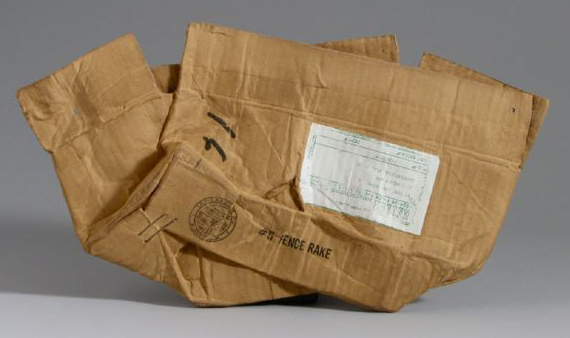 Clay is the most modest of all classic sculpture materials. I enjoy this thinking which must be something like,”What can we make with all the technical resources of contemporary clay sculpture? I know, how about an old crushed cardboard box???!”