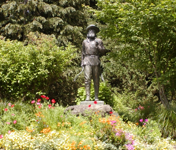 The Pioneer, which predates The Rough Rider. From the U of O web site: This sculpture, located across from Johnson Hall, was dedicated with great ceremony in May 1919. The sculptor, Alexander Phimister Proctor (1862-1950), used a trapper from near Burns, Oregon, as his model. The 1918 bronze statue, mounted on a base of McKenzie River basalt, was a gift of Joseph N. Teal, Portland attorney.