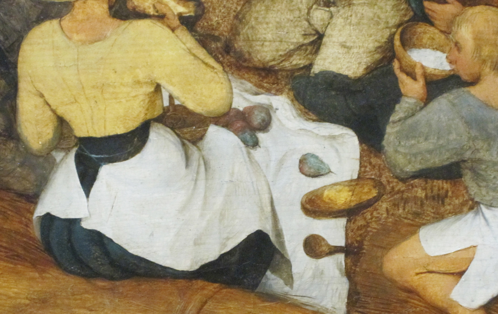 Of course we see the group having lunch, one guy snoozing. But check out this little detail of pears, dish, spoon.