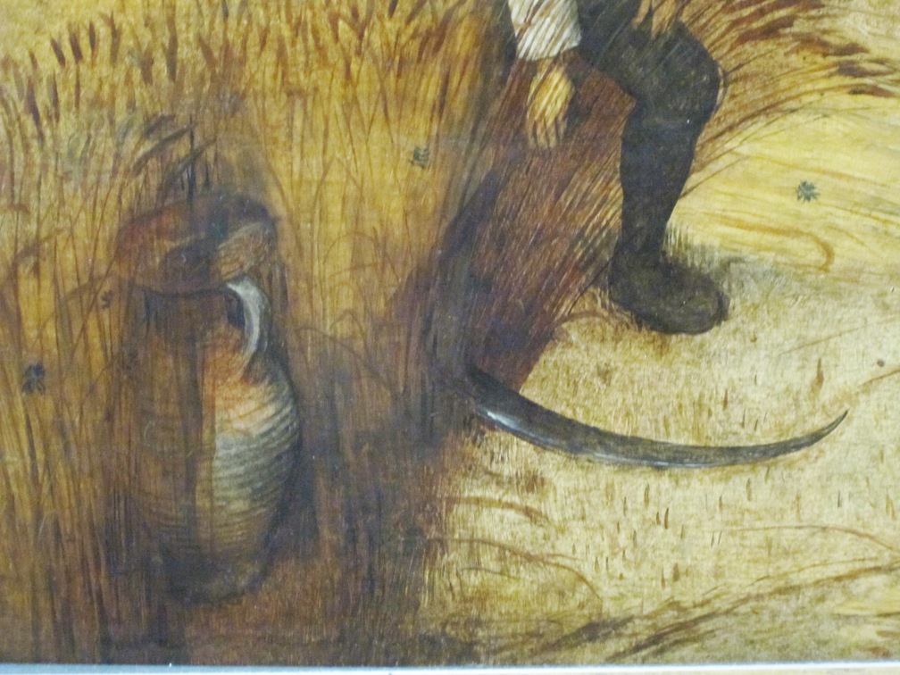 Another intriguing detail, a jug, just inside the edge of the uncut wheat. Maybe compositionally necessary.