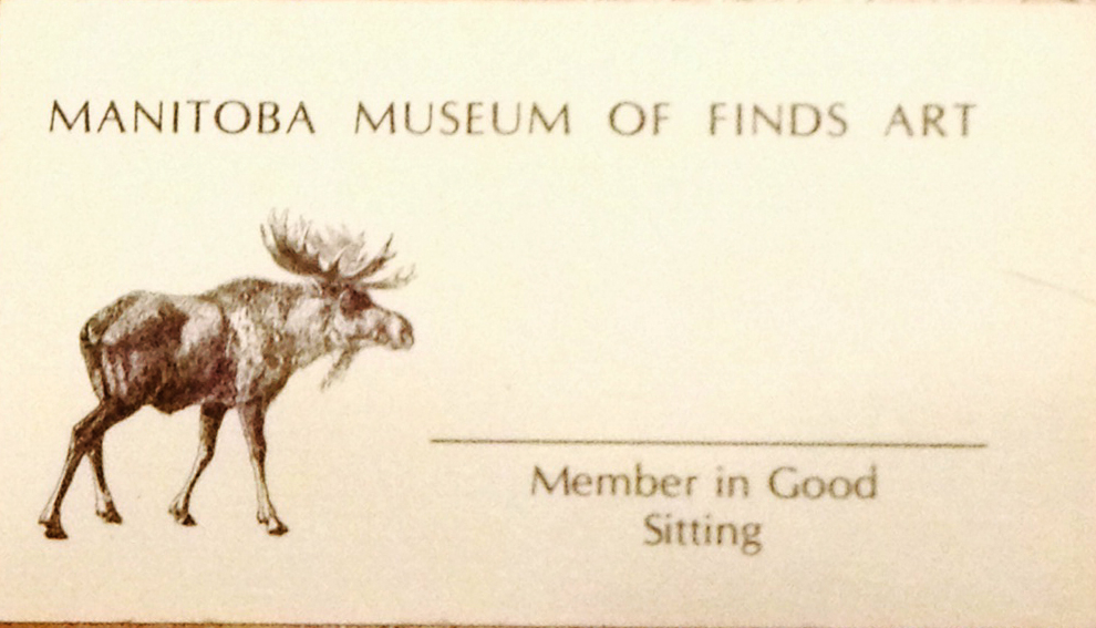 Recently I was talking with Alberta Mayo, founder of the Manitoba Museum of Finds Art, who gave me a membership card to her venerable institution.