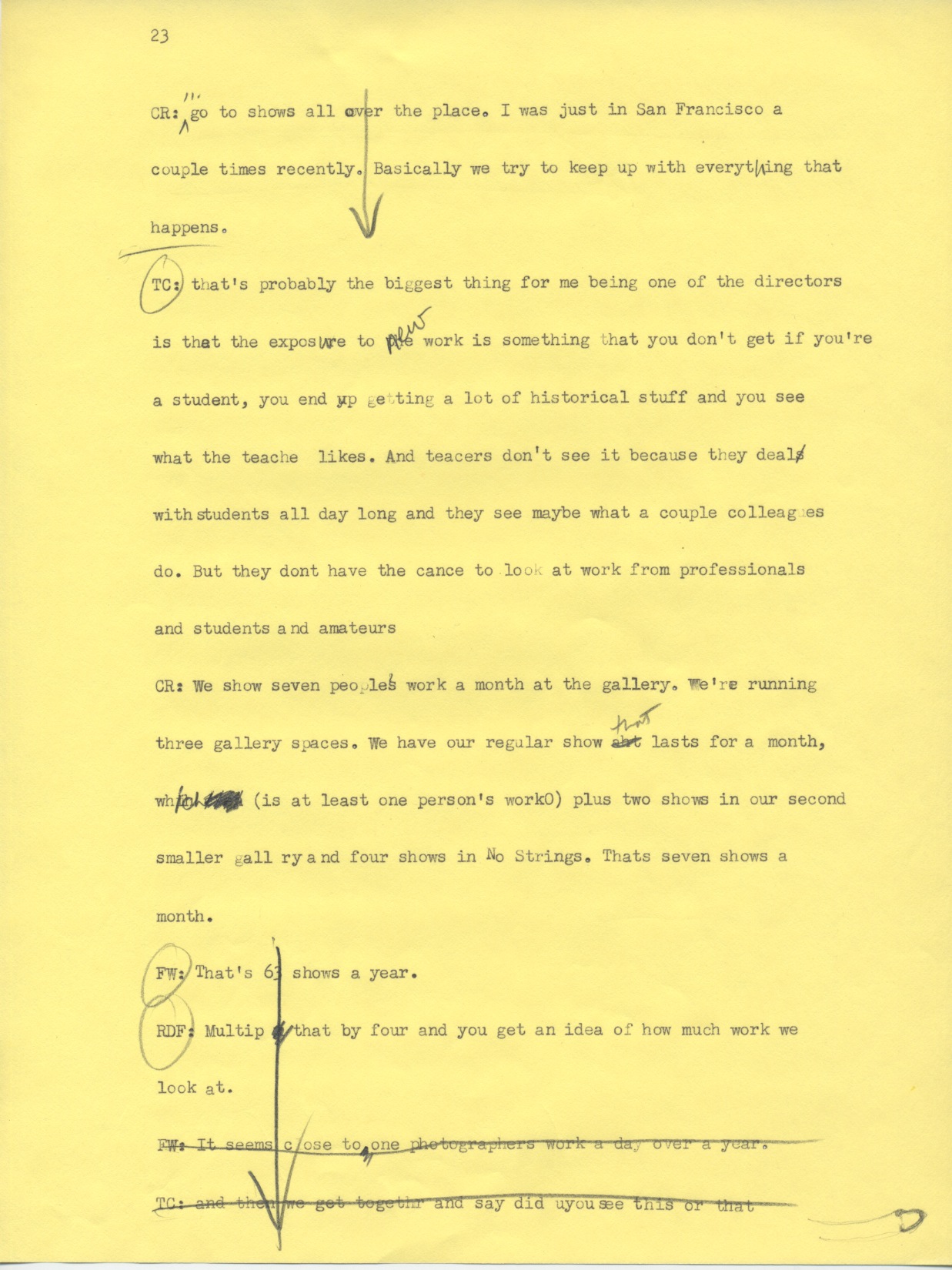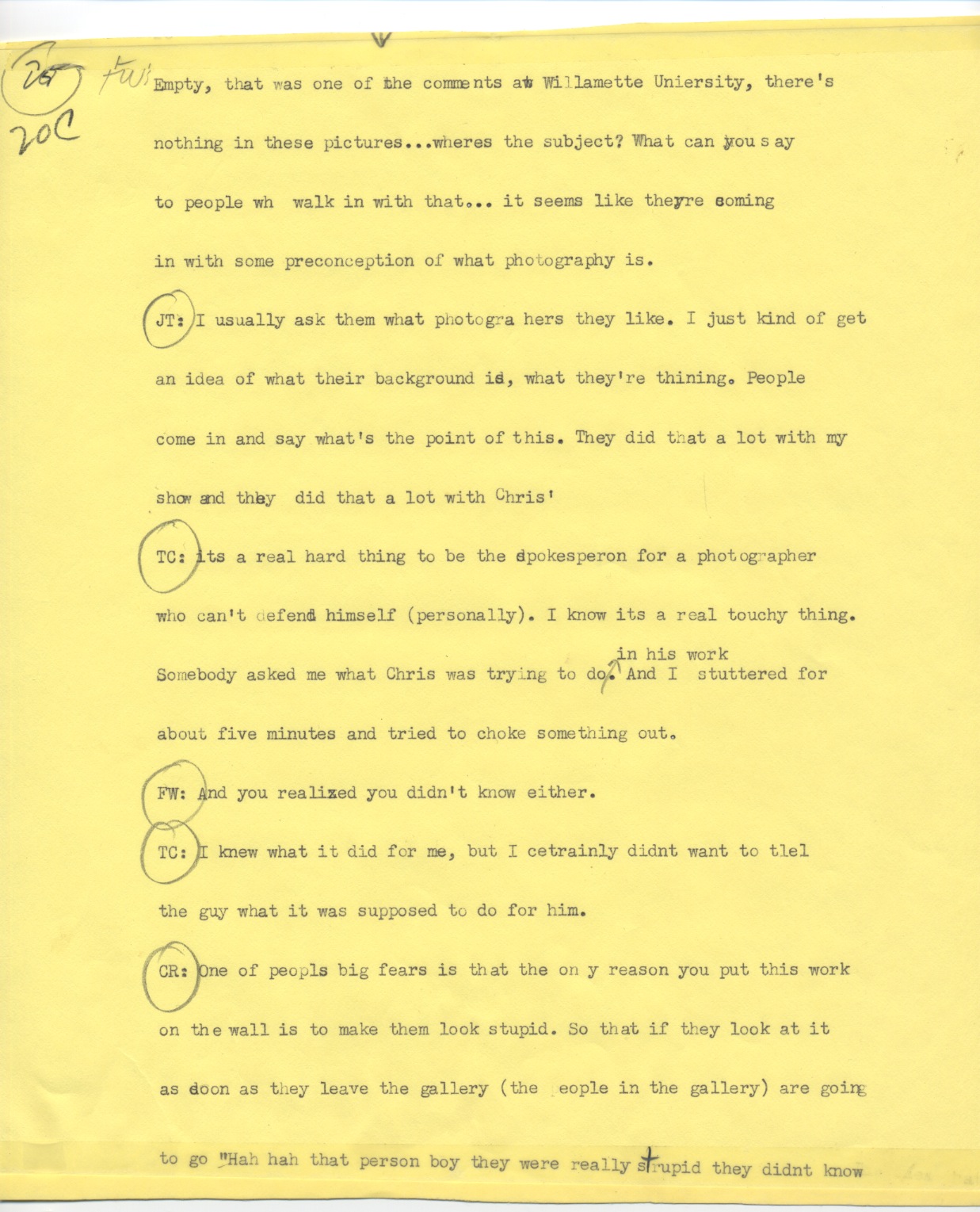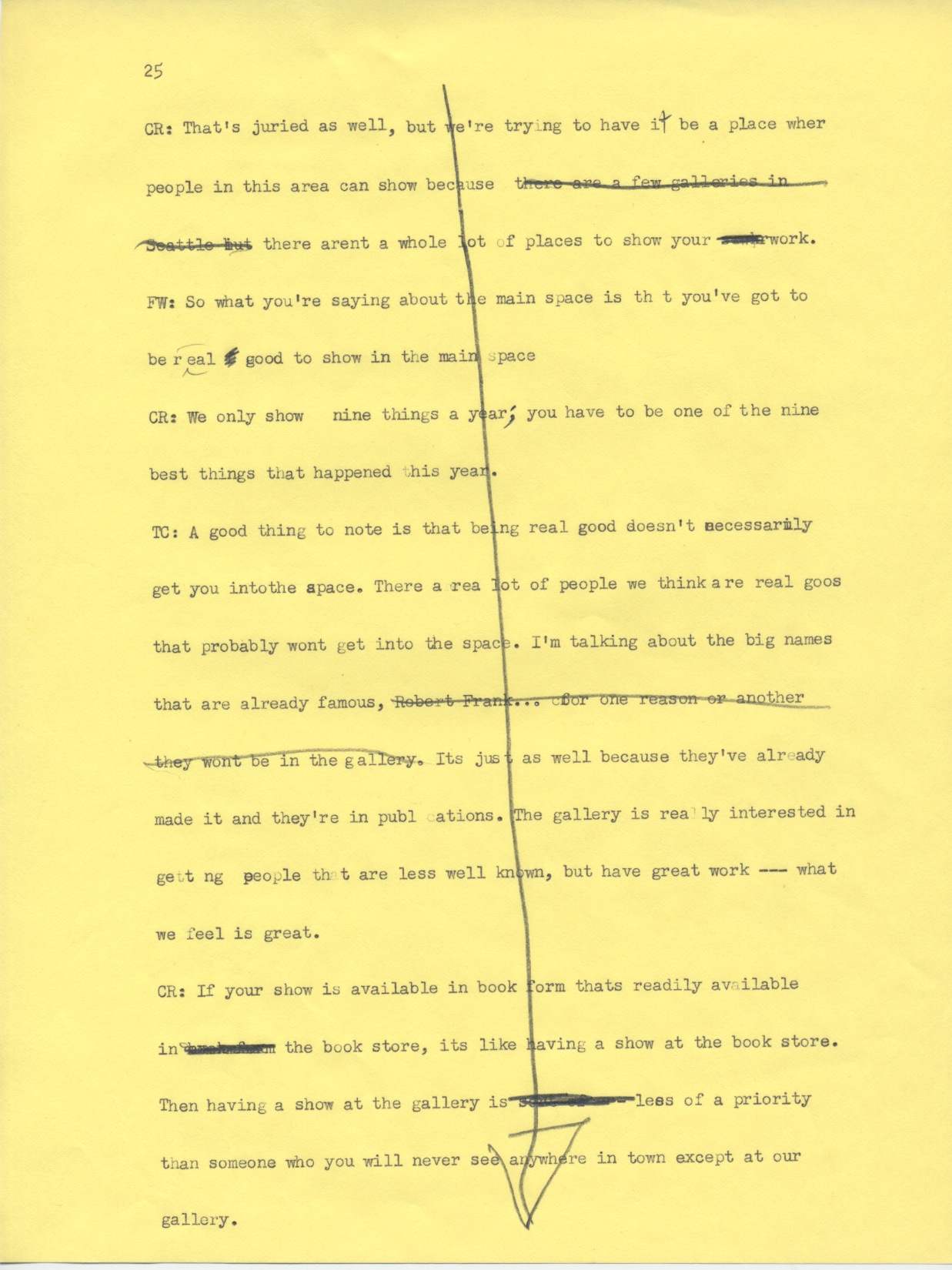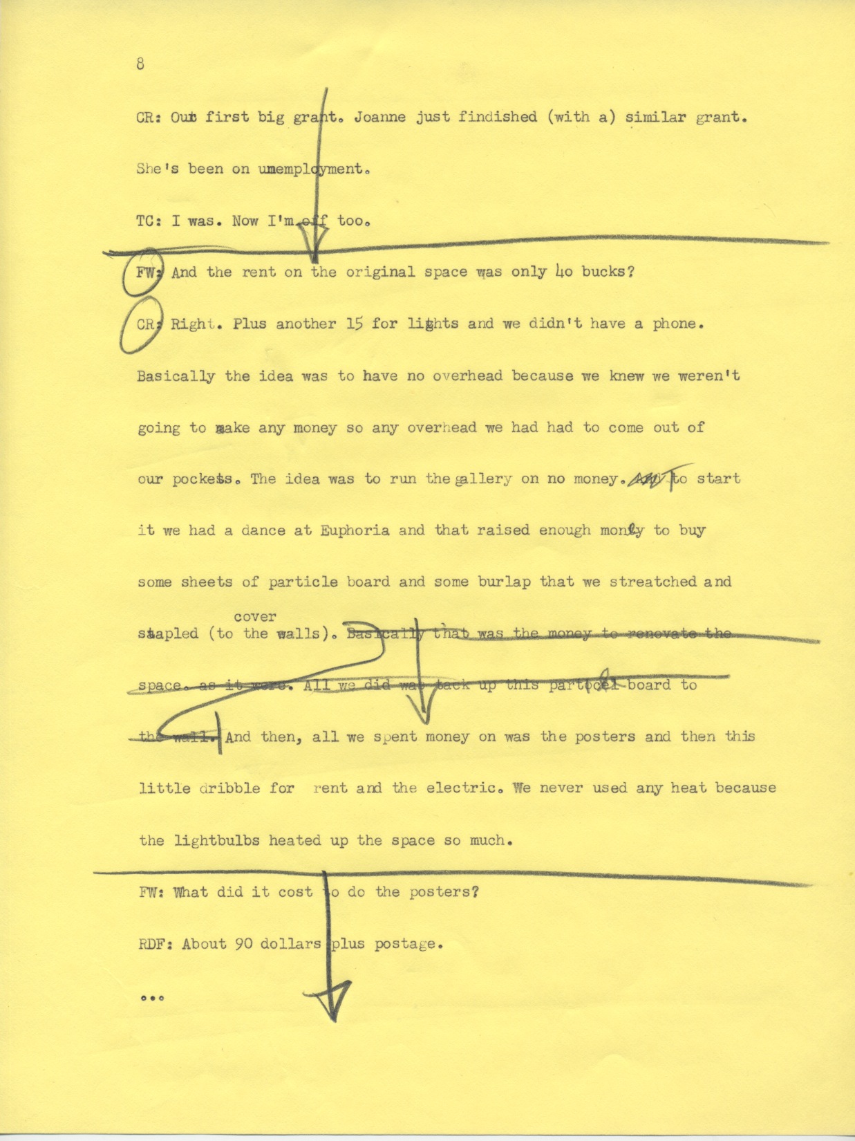 Recently, prompted by a Facebook post by Alberta Mayo, I was rummaging through my Blue Sky file, and I came upon the transcription of an interview that I taped on April 30, 1980 with some of the Blue Sky board. I was writing for Willamette Week and at the time the arts and entertainment section was called Fresh Weekly. So “FW” is Fresh Weekly. I don’t seem to have a published version of this. Here is is the direct transcript from the tape, done on my manual typewriter—Blue Sky thinking from almost 35 years ago.